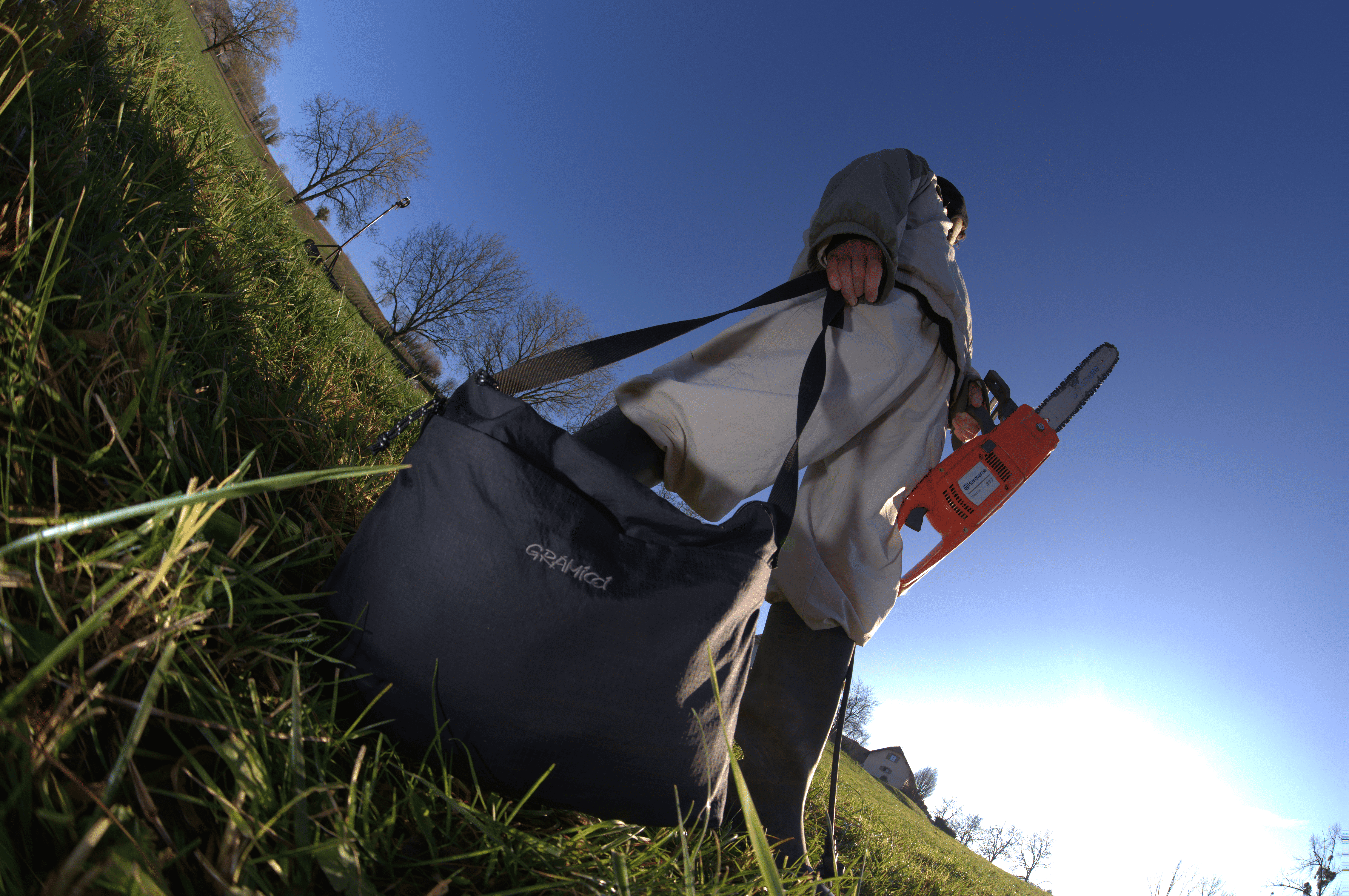 Plutôt que de se concentrer sur une démonstration brute de la contenance, le concept choisi mise sur le décalage et l’humour visuel : installer la sacoche dans un univers rural dépourvu des éléments attendus, à savoir les arbres, pour symboliser que tout ce dont on a besoin tient dans cet accessoire. Le recours à un effet fisheye amplifie le côté graphique et surprenant de l’image, renforçant le focus sur la sacoche tout en insufflant une énergie contemporaine à la campagne.